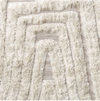 This design is a hand-knotted rug in natural wool with a soft irregular pattern. It is in 100% natural, unbleached wool in a soft shell-white high pile and sand colored backing. A long fringe elevates the edge and adds a textured detail.