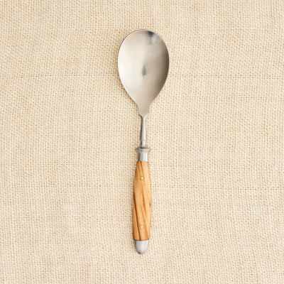 These Eichenlaub salad pieces are hand-forged from one piece of stainless forging steel, ground by hand, and finely finished by experienced artisans with handles of olive wood, which has a smooth, silky surface and a beautiful, pale grain. Olive wood is hard, dense and durable, making it ideal for kitchenware, and it deepens with depth of color with age. Eichenlaub cutlery, founded in Solingen, Germany, in 1910, is crafted in 122 steps of production for each hand worked piece. Signature double metal bolsters at the bottom and top of the handle provide stability and create an elegant, balanced design. Handles are exceptionally riveted and polished.The long tines of the serving fork are meticulously tapered all around, ensuring that they