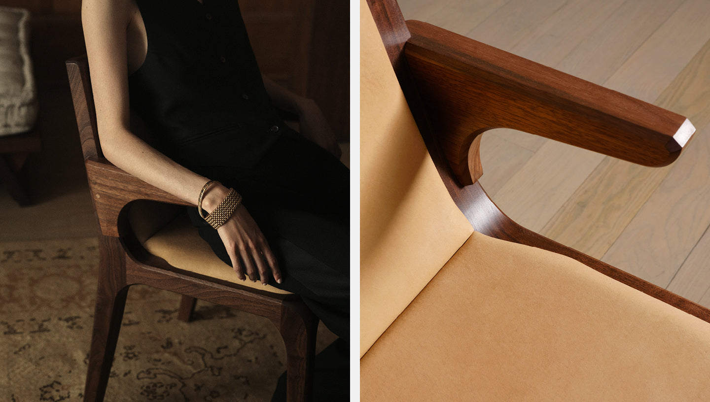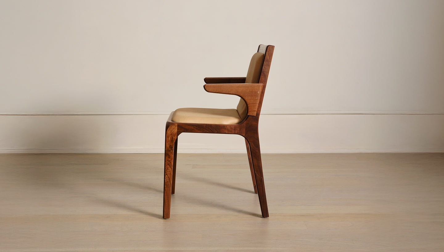 The Stockholm Dining Armchair maintains the classic Stockholm silhouette while adding sculpted armrests that frame the seat for added comfort and enclosure. Featuring angled legs, refined shaping, and expert joinery, this versatile piece works in dining rooms or as a standalone accent chair.